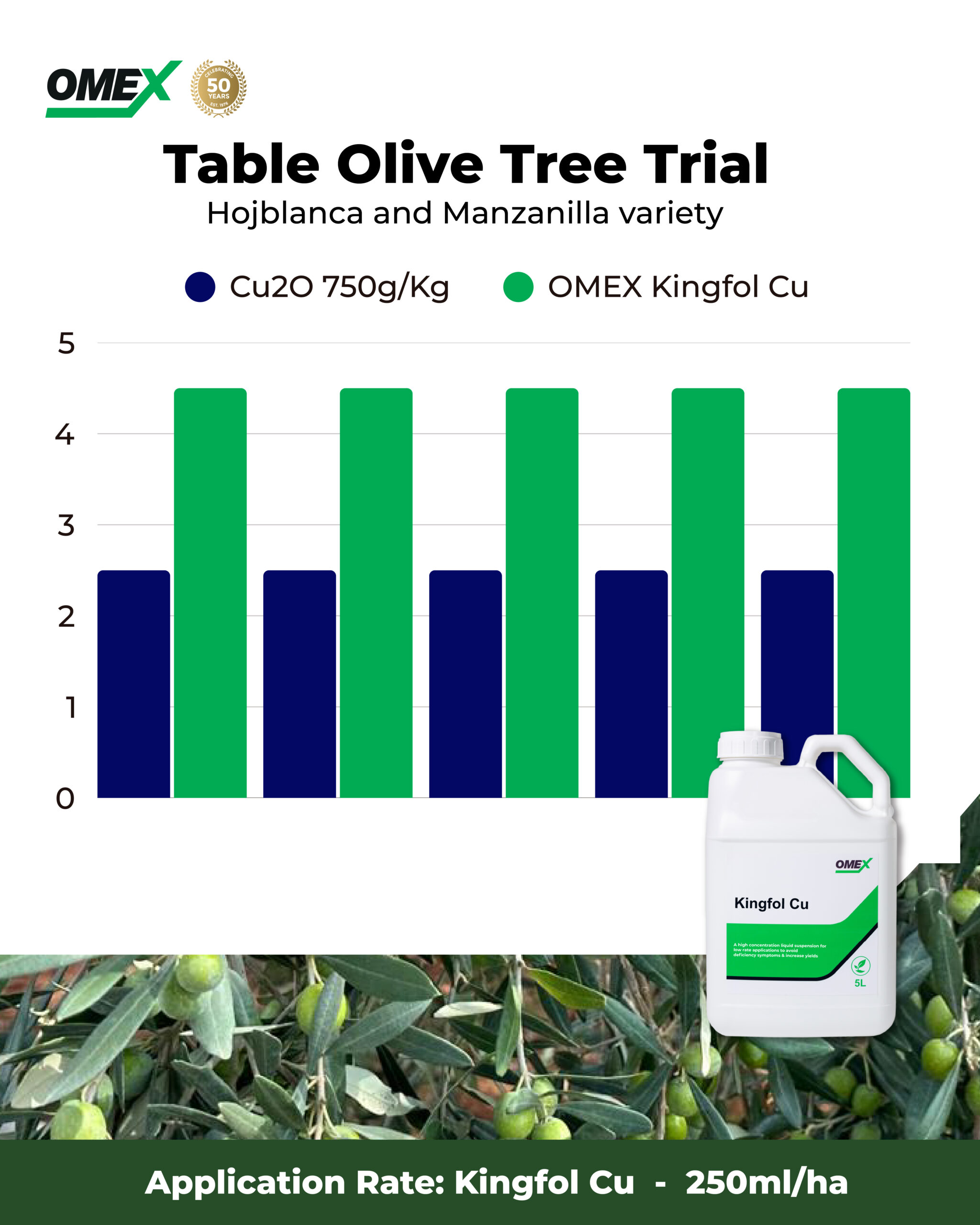 This combination makes KingFol Cu a top-performing copper solution for olive growers.